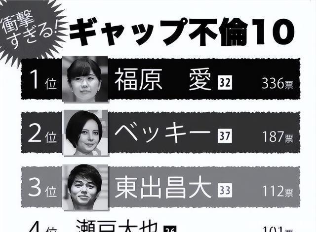 她还高票当选日本家庭主妇评选的“不伦艺人”排行榜第一名。